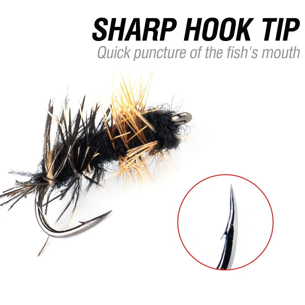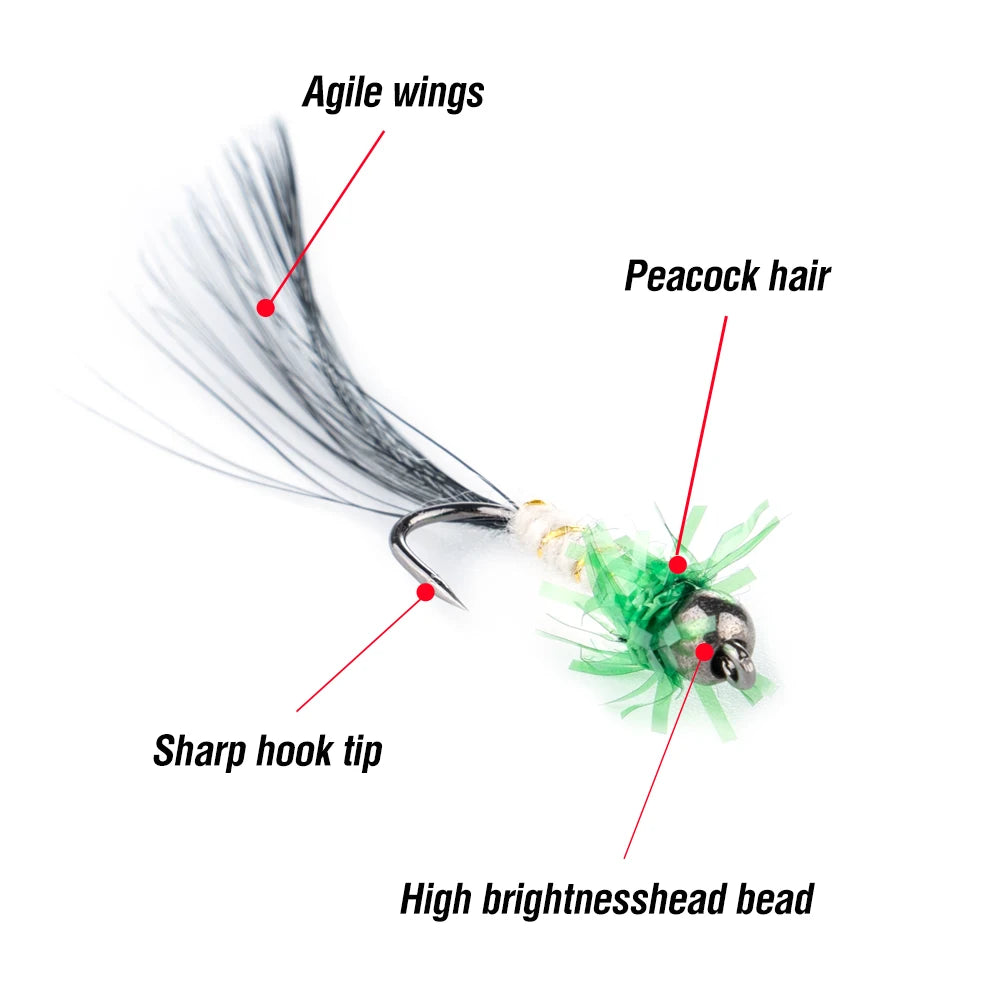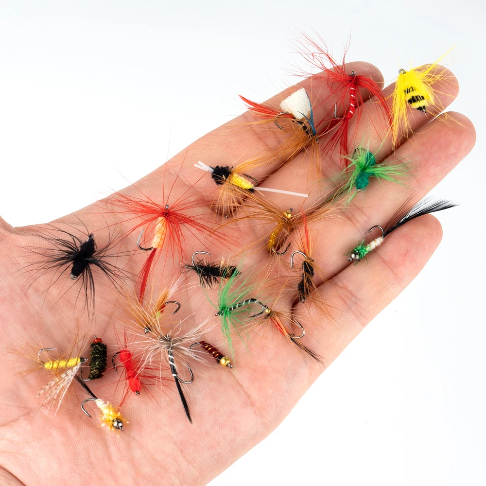 1.Abundant Quantity & Variety: Comes with 100 pieces fly fishing Lure in multiple styles, colors, and sizes. It covers a wide range of patterns to mimic different insects, meeting various fishing scenarios and target fish species.